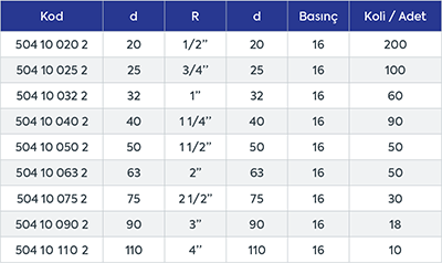 UH-PVC Tek Taraf İçten Dişli TE